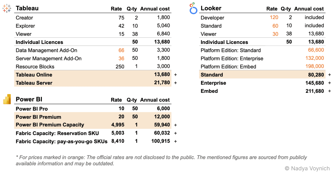 Thus, for individual professionals, Power BI and Looker Studio are the most cost-effective solutions.