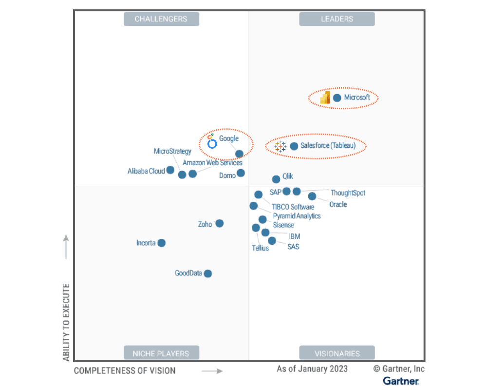 - Magic Quadrant for Analytics and Business Intelligence Platforms as of January 2023, from Gartner.