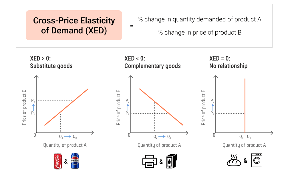 Another important concept is cross price elasticity of demand (XED) that measures how the quantity demanded of one product changes in response to a price change in another product: