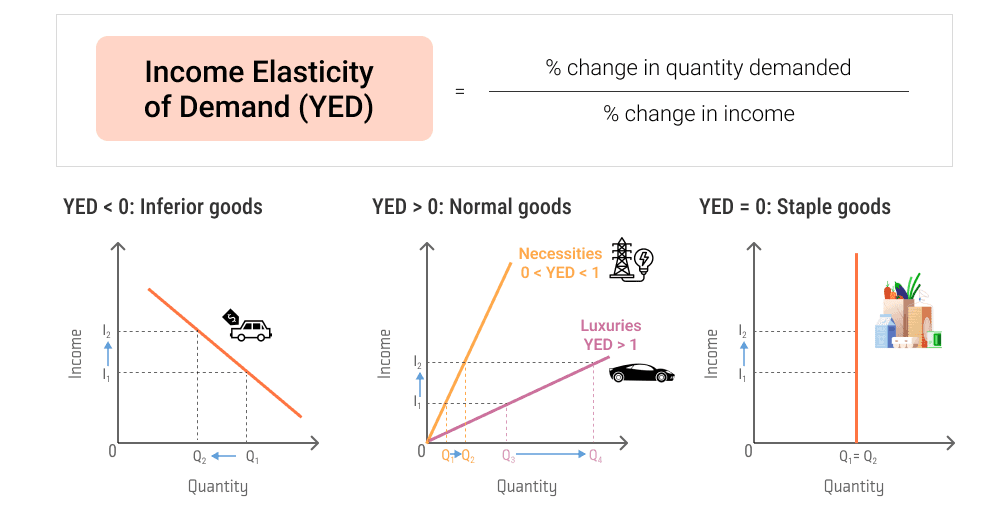 - If income elasticity of demand is greater than 1 (YED > 1), it is a luxury good.