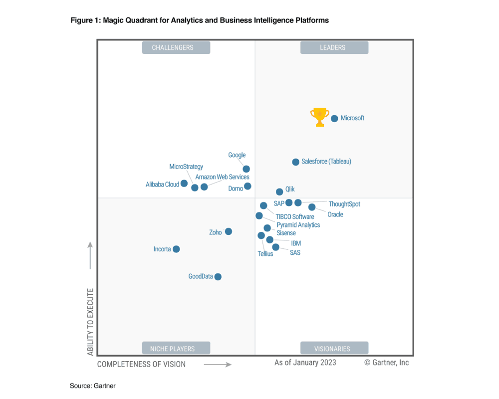 - Magic Quadrant for Analytics and Business Intelligence Platforms as of January 2023, from Gartner